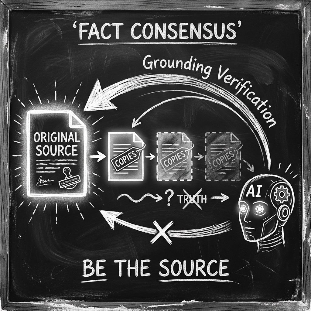 To be cited, you must be the “Consensus Source” (The Origin). Repeating facts makes you a copy; originating facts makes you the Authority.