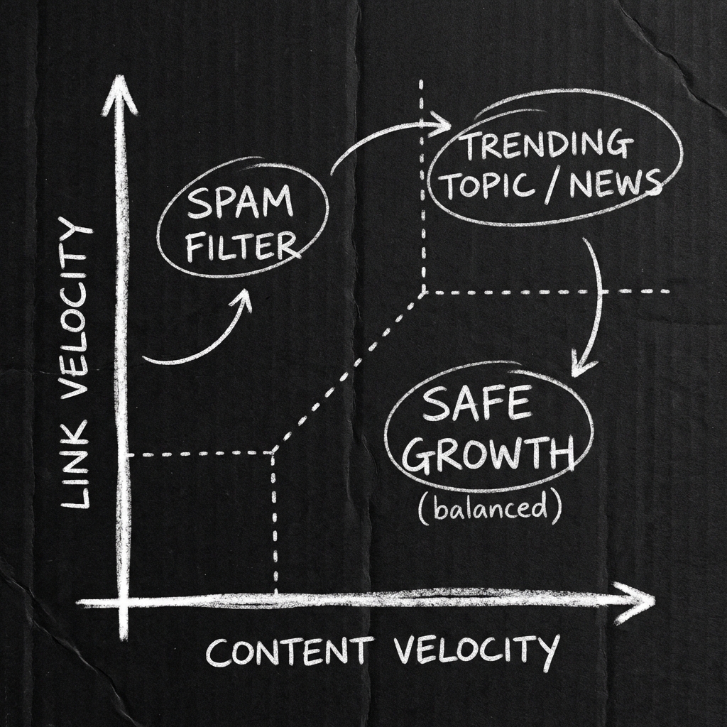 When you match content velocity (200% increase) with link velocity (200% increase), you force Google to classify the anomaly as “News/Trend” rather than “Spam.”